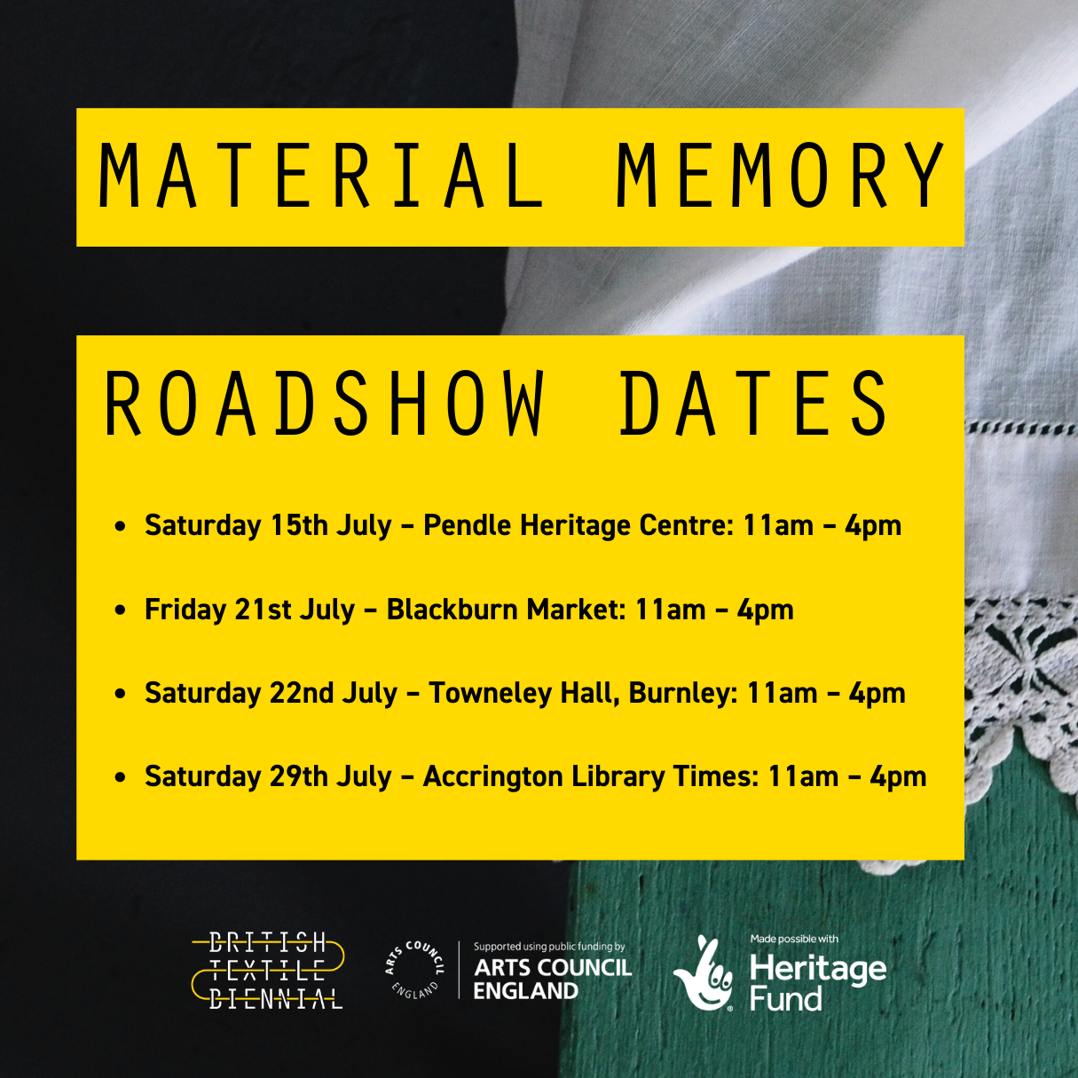 More info about the roadshows on the British Textile Biennial website.